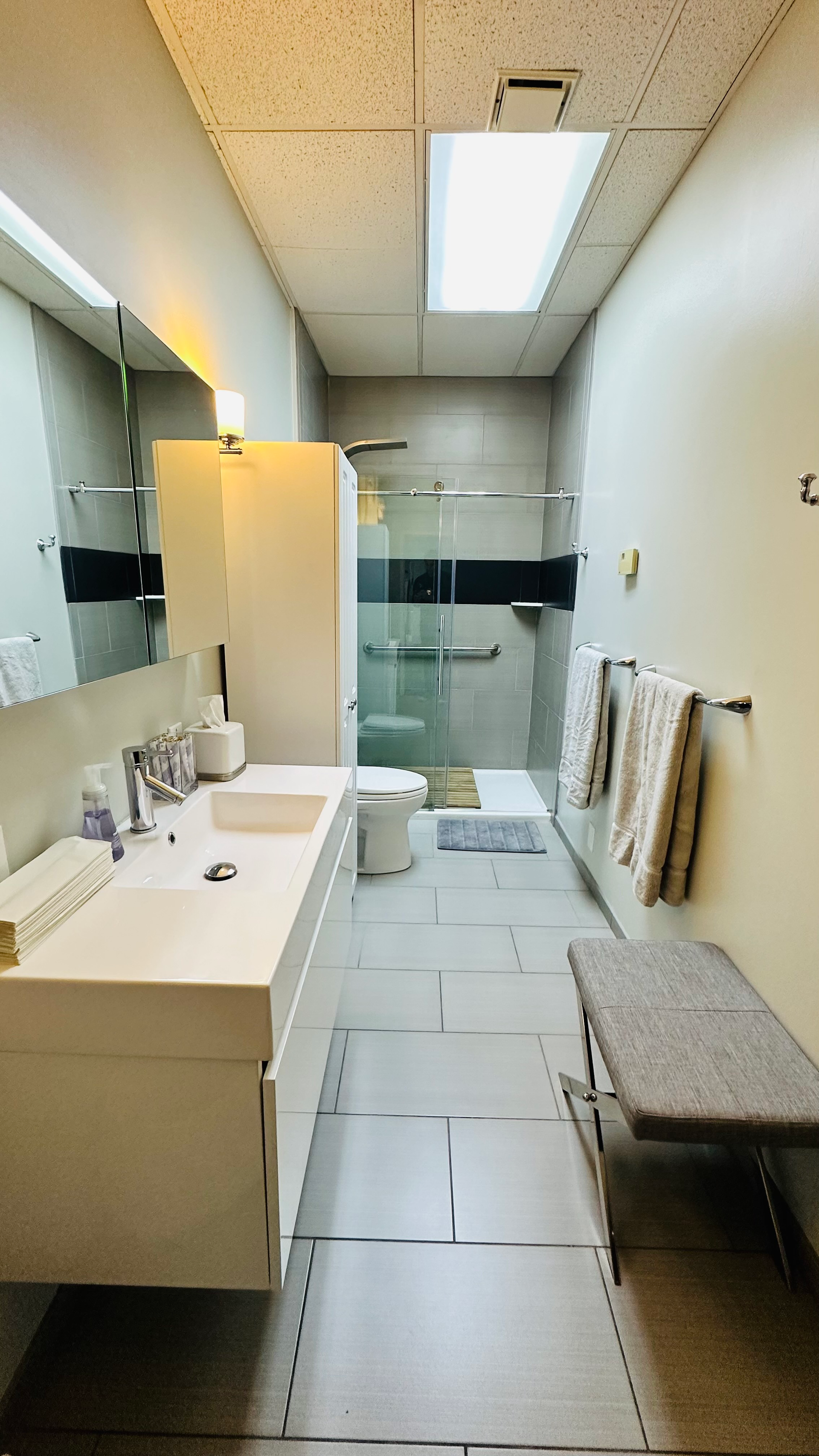 We offer Cadillac Crew Cars and a Fitness Center with showers.